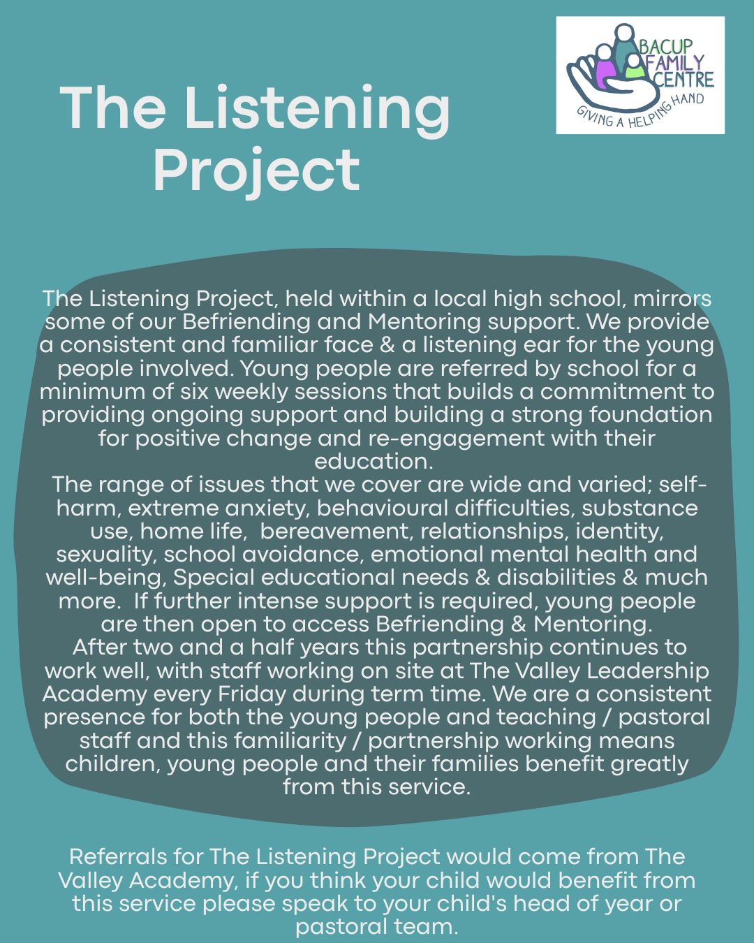 The Bacup Family Centre works with children, young people, their families and individuals, listening and responding to their needs.