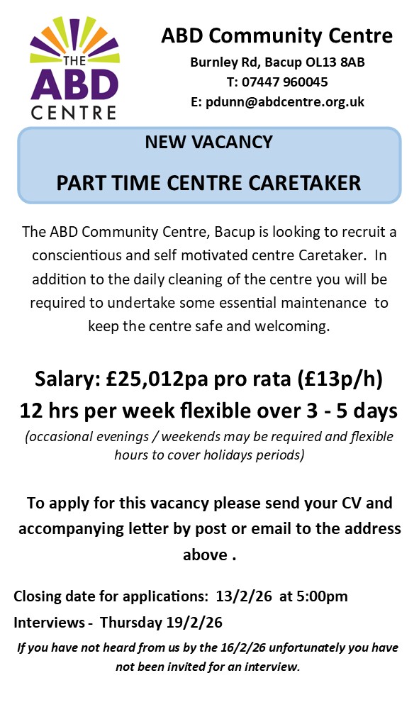 Vacancy: part-time centre caretaker
