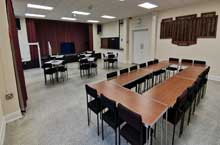 A versatile room on the ground floor with the option of direct ramp and step access from the front of the building, accessible entrance from the main side entrance and from the disabled car park at the rear of the building. Can be used for exercise, training, conferences, events and functions. Direct access into the kitchen and bar area, WC's and disabled WC.